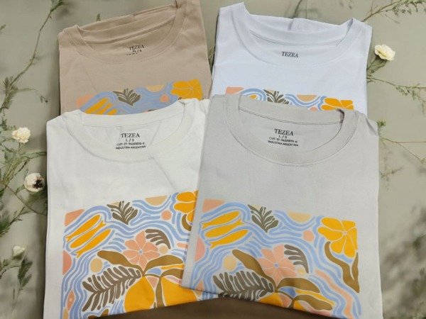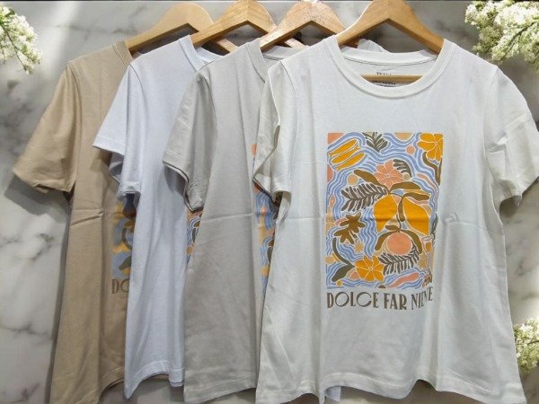 🏷Remera Estampado con diseño de flores y limones, detalle de corte holgado de Algodón, tela fresca y cómoda, muy suave al tacto.